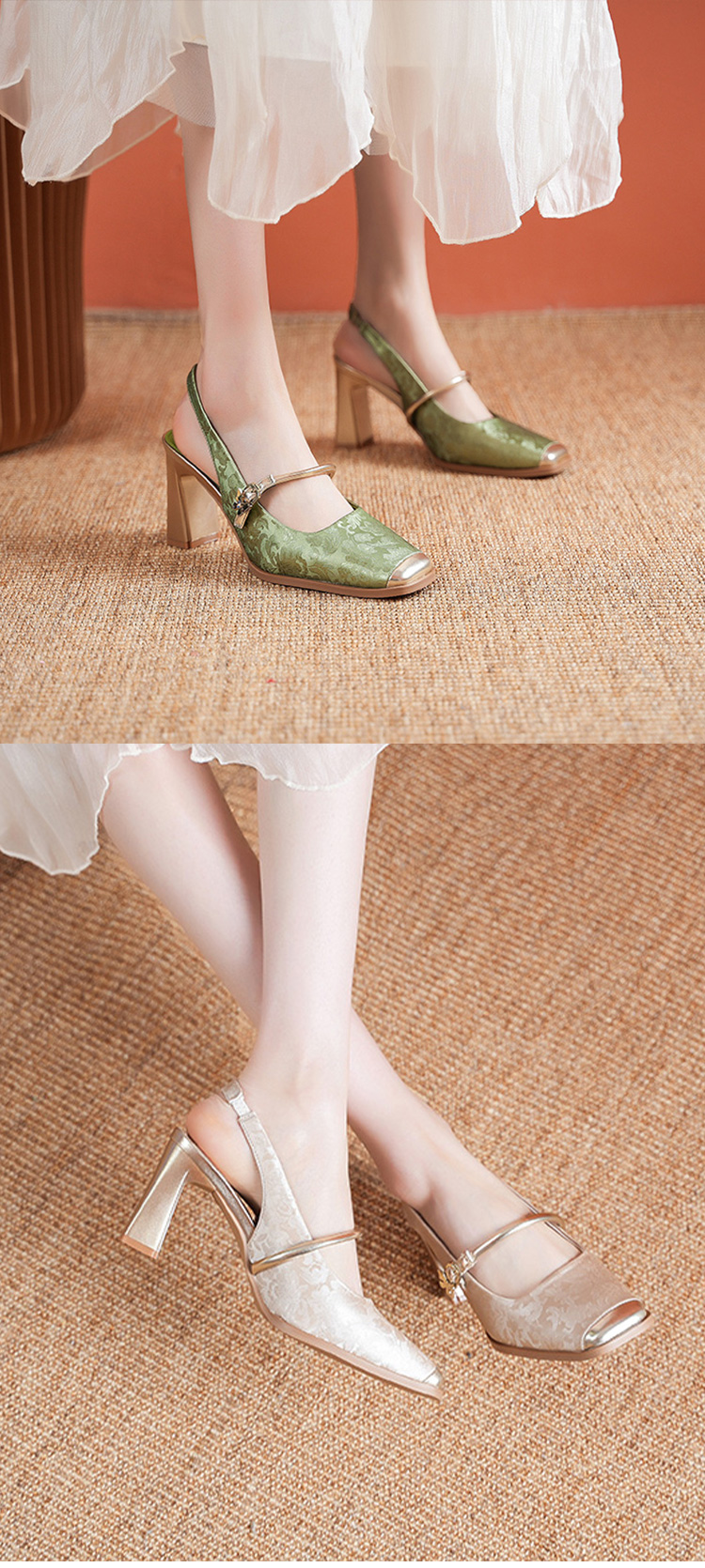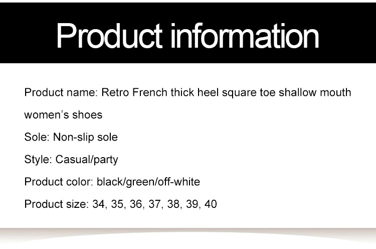 Retro French Chunky Heel Square Toe Shallow Mouth Women's Single Shoes