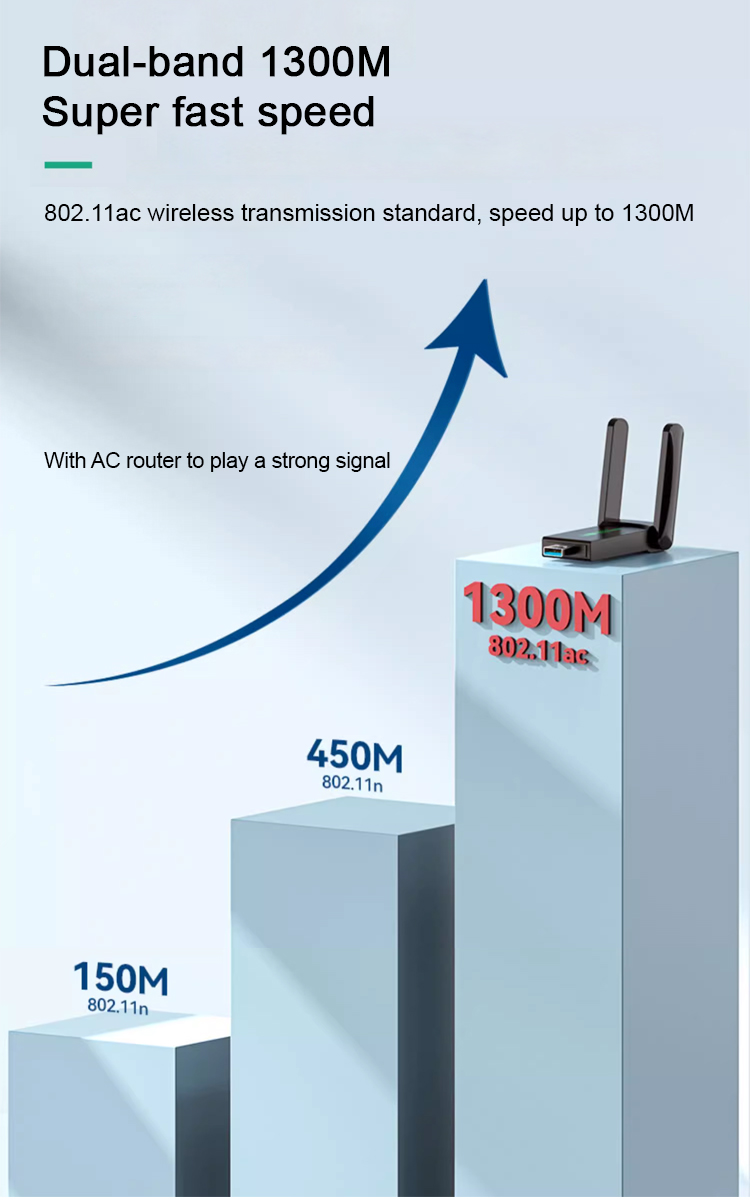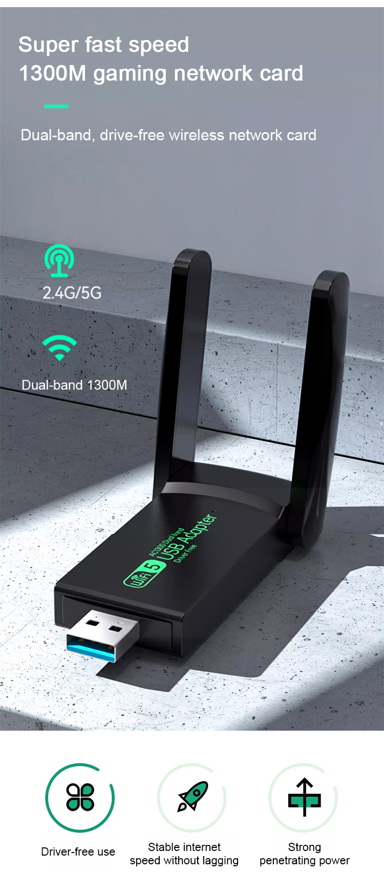 [Fast to Fly] 1300M Dual Band Drive-free Wireless Network Card